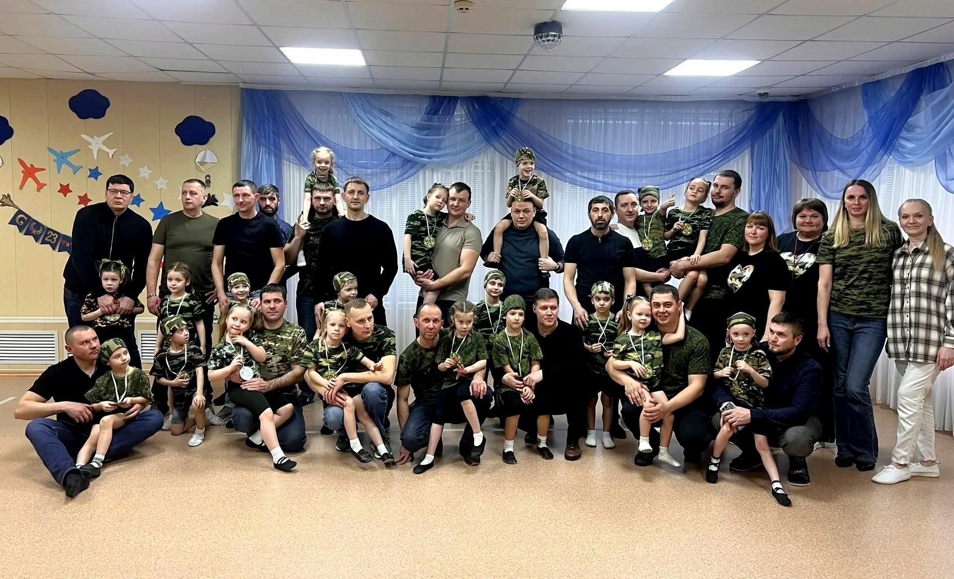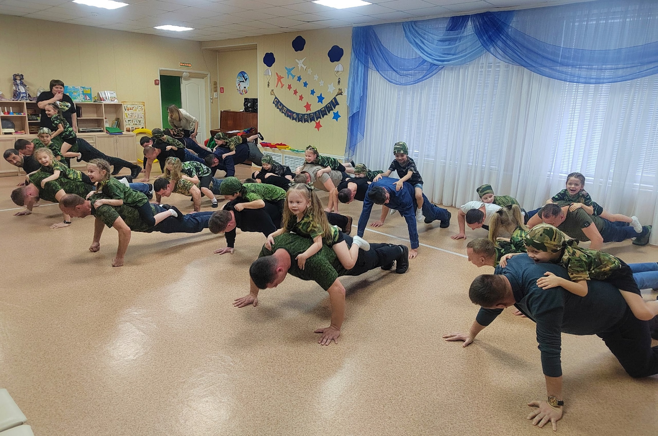 ⭐ Ну, а папы показали прекрасную физическую подготовку, участвовали в эстафетах вместе с детьми, прыгали через скакалку, отжимались и даже танцевали.