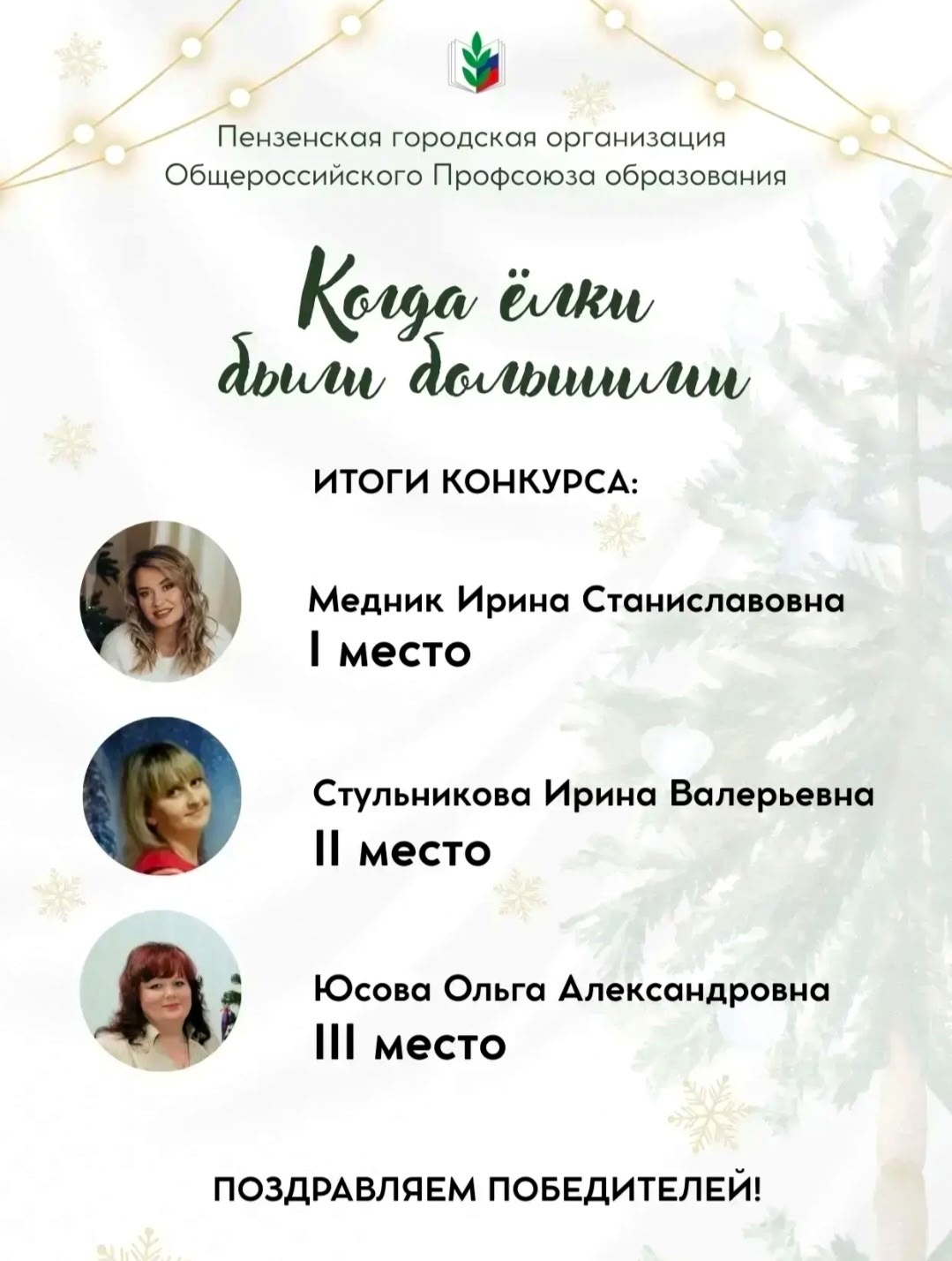 за поддержку в Профсоюзном Конкурсе «Когда ёлки были большими»!